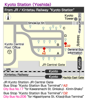 City Bus No. 17 for "Kawaramachi-dori - Ginkakuji -Kinrin-shako" No. 206 for "Higashiyama-dori - Kitaoji Bus Terminal" |