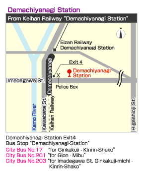 No. 17 for "Ginkakuji - Kinrin-shako" No. 201 for "Hyakumanben - Gion" No.203 for "Shirakawa St. Ginkakuji-michi - Kinrin-shako" |
