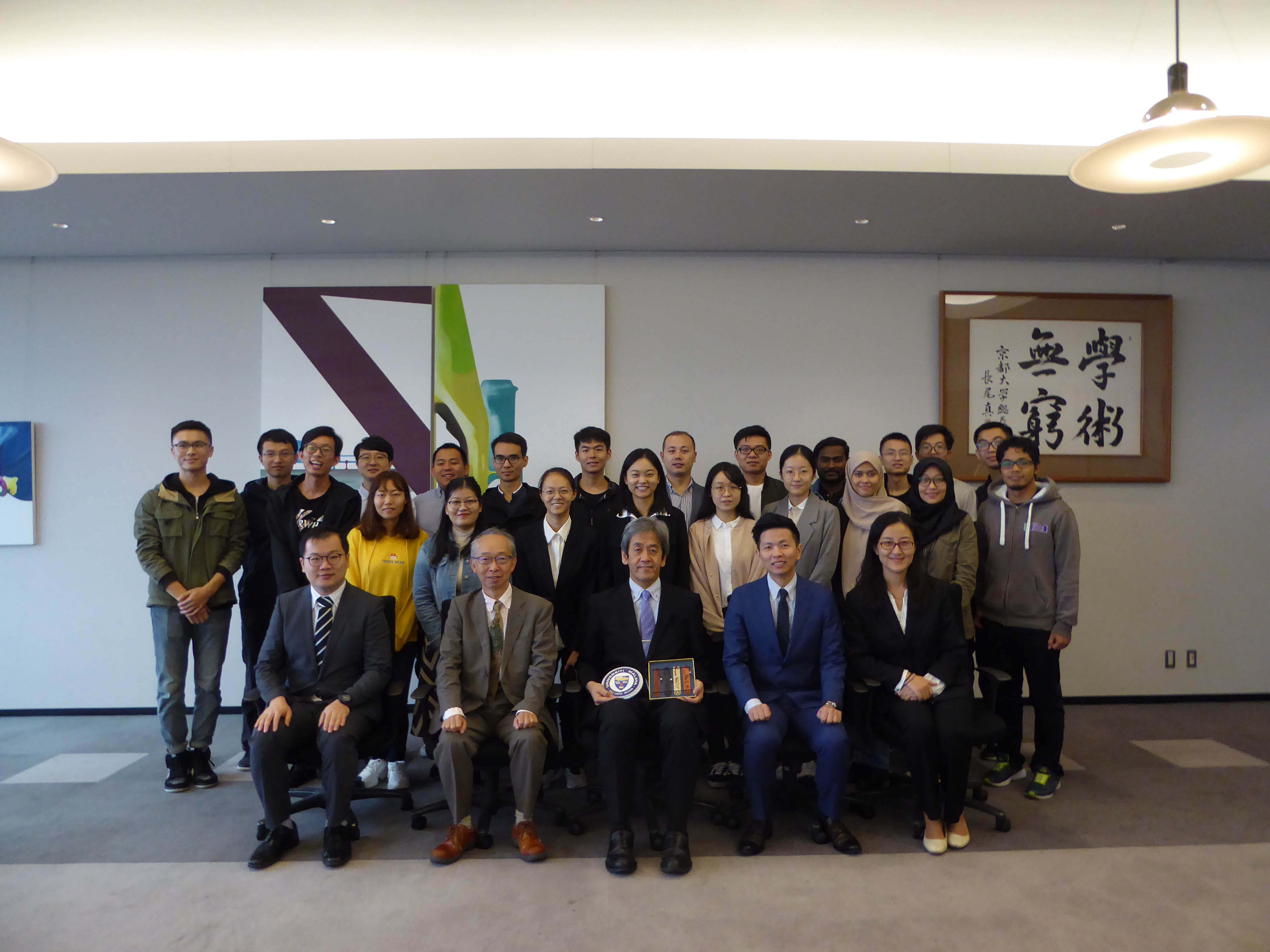 They took this opportunity to make an official visit to Dean of the Graduate School of Engineering. Dr. Huang Yuxiong extended his thanks to Dean Masahiro Ohshima for fostering young researchers in the field of environmental technology. Prof. Hiroaki Tanaka, Director of the Kyoto University–Tsinghua University Cooperative Research and Education Center for Environmental Technology at Shenzhen(Kyoto University side), and also Director of the Research Center for Environmental Quality Management also joined the meeting. Then, they exchanged views of mutual and specific interests with other researchers present in order to strengthen the foundation for nurturing global talented human resources who will be responsible for the next generation.