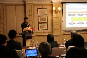 The Faculty Development Symposium was undertaken at the Imperial Queen’s Park Hotel in Bangkok for the purpose of clarifying the issues related to the collaborative educational program conducted in 2012 and of discussing the ideas for improving next year’s program from the viewpoints of both the faculty members and the students, based on the results of the collaborative coursework conducted by Kyoto University and ASEAN alliance universities in 2012. The participants from Kyoto University were the faculty members of the Graduate School of Engineering, Graduate School of Global Environmental Studies, Graduate School of Management, and Disaster Prevention Research Institute, while the participants from the ASEAN alliance universities were the faculty members of Asian Institute of Technology, Chulalongkorn University, Kasetsart University, Institute of Technology, Bandung, University of Malaya and Vietnam National University, Hanoi. In total, around 100 participants attended the symposium, including students who were scheduled to participate in the DRC Student Workshop held after the symposium.
