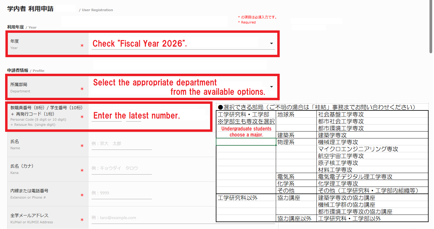 Submit your application to: Kyoto University Katsura Campus (Graduate School of Engineering) Administrative Office, Academic Cooperation Division, Research Facility Support Section *It will be possible to submit documents with a stamp by email. |