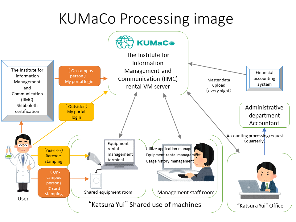 KUMaCo (Kyoto University Management System for Core Facilities) is a usage management system for shared facilities that runs over the internet and dedicated software.