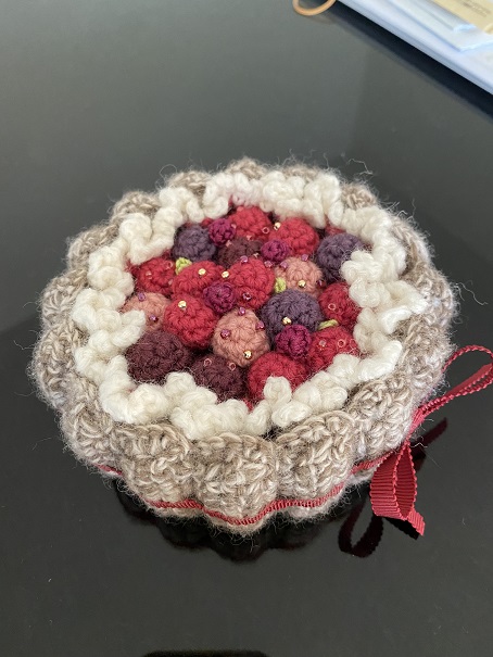 時間がある時はゆっくり編み物や手芸をするのが好きなんだそう(写真は仲先生手編みのポーチ!)