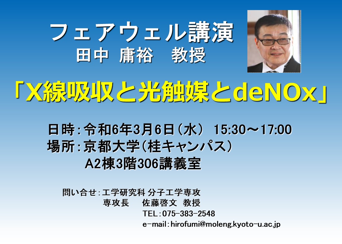 田中庸裕先生 フェアウェル講演 https://www.t.kyoto-u.ac.jp/ja/news-events/events/admg/2023_saishukougi/farewell_tanaka/view https://www.t.kyoto-u.ac.jp/ja/news-events/events/admg/2023_saishukougi/farewell_tanaka/@@images/image-1200-6739bb0e3b0c236211a2b666e10389d3.jpeg 田中庸裕先生 フェアウェル講演 京都大学WEBサイト最終講演3月6日(水)_田中庸裕先生_題目 X線吸収と光触媒とdeNOx.jpg image/jpeg Type image/jpeg Dimension Dimension 1153x824 Size File size 171.7 KB ダウンロード フルサイズ画像を見る