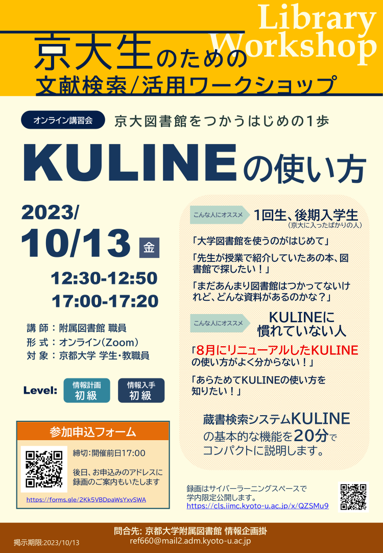 KULINE has been renewed on August 21, 2023! This workshop is recommended for those who want to know more about the new KULINE.