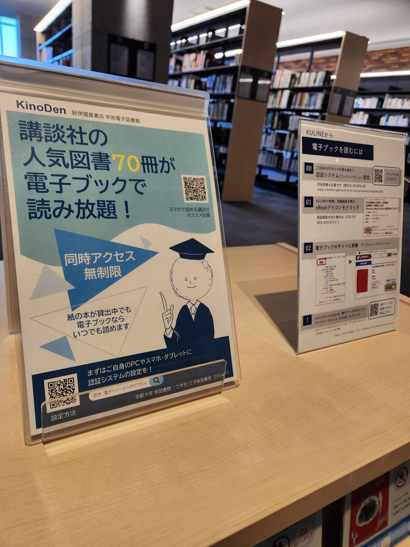 【桂図書館】企画展示「KinoDen電子ブックフェア―スマホで読める講談社おススメ図書―」開催中!
