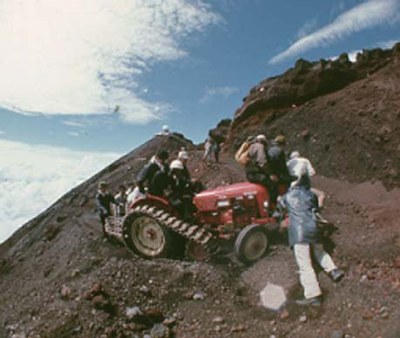 2年の夏は、トラクターで富士山に登った。これは、高地におけるトラクターの性能調査という名目であった。砂地で急傾斜のために、押したり、板を敷いたりしながら2日かけて登頂した。これは、登るという行為よりも、その準備の方が大変であった。トラクターの借用、道路の通行許可などである。この通行許可が、静岡県と山梨県の警察署、建設省、荷役業界から浅間神社まであり、ここで、京都大学という名前が良く効いた。その映像はトラクターメーカーのテレビのコマーシャルに2 年間ほど使われた。