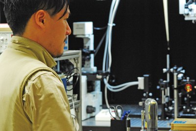 学生時代は,青木一生先生(現 · 京都大学 · 名誉教授 / 国立成功大学(台湾)· 栄誉講座教授)の指導のもとで,分子気体力学の移動境界問題における解の長時間的振舞に関する数値解析に取り組みました。誤解を恐れずにひらたく言うと,ナノスケールの振り子の振動が空気抵抗によって減衰していく様子を計算していたことになります。非常に小さいスケールに注目しているので,気体が分子の集団から構成されているという事実を考慮に入れた理論を使わなければ正しい現象の記述が出来ません。近年の微細加工技術の発展にともない,このような微小スケールにおける流体力学,すなわち分子流体力学は重要性を増しており,例えばマイクロ・ナノ共振器の設計に応用されることが期待されています。今思い返すと不思議なことですが,学生時代は実験的な研究にまったく興味がわかなくて,数理的な研究と数値解析にどっぷり浸かっていたように思います。